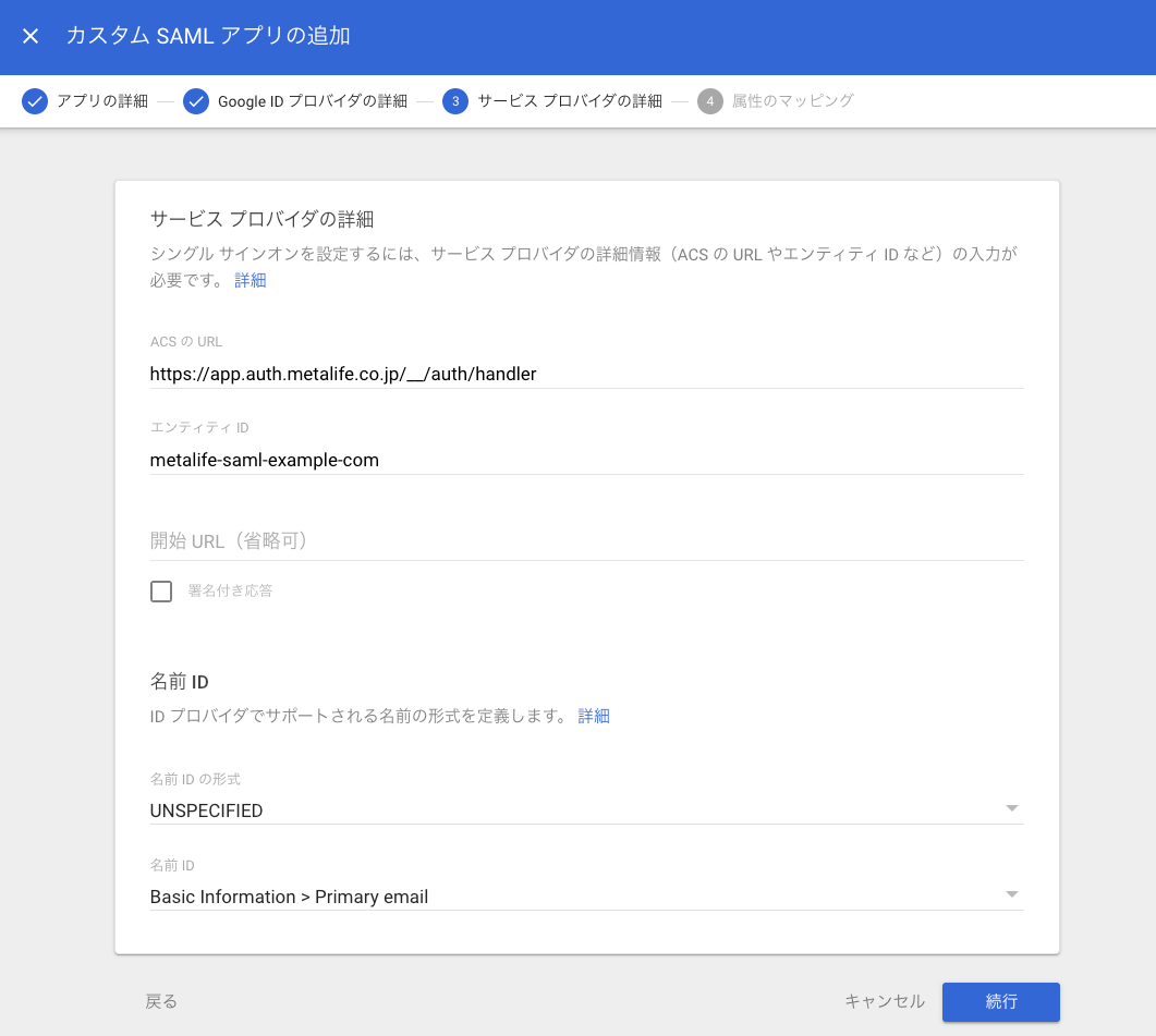 手順3 Google ID プロバイダの詳細