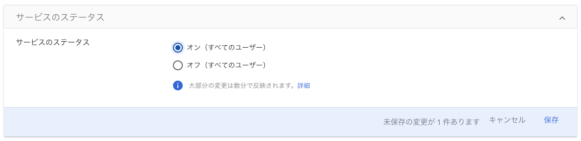 [オン(すべてのユーザー)] にチェックを移動し、[保存] をクリックしてください。