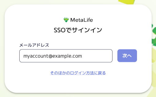 MetaLifeのサインインページを開き、SSOができるかどうかお試しください。